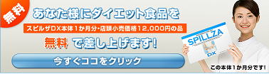 ダイエット時の減食をサポートするスピルザDX(1ヶ月分・店頭小売価格12,000円の品)も「無料提供品」